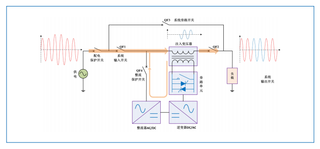 動態(tài)電壓調(diào)節(jié)器 HTAVC 由四象限整流器、逆變器、旁路單元和串聯(lián)在電網(wǎng)輸入端和負載之間的注入式變壓器組成,裝置從電網(wǎng)中獲取原始能量,無儲能元件。它可快速在線調(diào)節(jié)電壓,是解決電壓暫降電壓暫升、電壓波動、改進電能質(zhì)量的高效可靠的裝置。